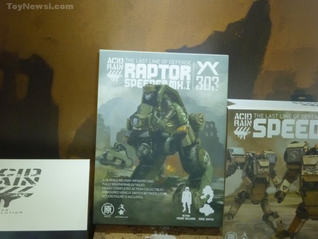 Shown below are images from the Toynami booth at SDCC of their new line of Acid Rain 3"3/4 figures and Mech type vehicles.