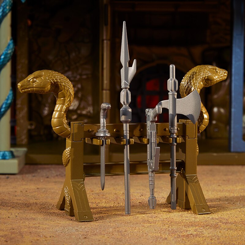 The Masters of the Universe Snake Lair is the fortress of Lady Slither and home base for the Snake Men. It was first featured in Classics Mini Comic #5, “He-Man vs. Skeletor! Their Final Battle!” but was never created in toy form. Now, you have the chance to bring it to life! The MOTU community voted it Eternia’s Choice, and we’ve incorporated fan feedback to shape the design. It’ll feature a throne room for Lady Slither, with a serpentine design exactly to her liking. Unwelcome visitors will be greeted with blasters, snatched up in capture devices, and placed into the iron maiden or snake shackles. No villain is complete without an evil steed, this set also features Lady Slither’s two-headed serpentine steed Chimera. This is your one and only chance, fund all the tiers and restore Lady Slither’s stronghold to its Preternian glory! You can back it now for $300.00 on the MattelCreations website.