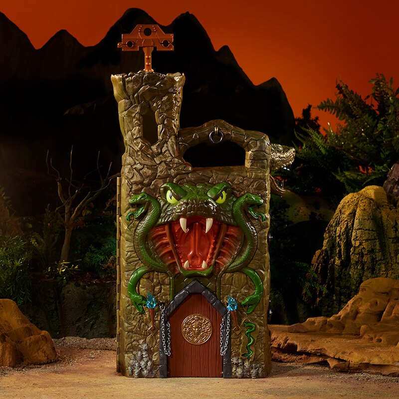 The Masters of the Universe Snake Lair is the fortress of Lady Slither and home base for the Snake Men. It was first featured in Classics Mini Comic #5, “He-Man vs. Skeletor! Their Final Battle!” but was never created in toy form. Now, you have the chance to bring it to life! The MOTU community voted it Eternia’s Choice, and we’ve incorporated fan feedback to shape the design. It’ll feature a throne room for Lady Slither, with a serpentine design exactly to her liking. Unwelcome visitors will be greeted with blasters, snatched up in capture devices, and placed into the iron maiden or snake shackles. No villain is complete without an evil steed, this set also features Lady Slither’s two-headed serpentine steed Chimera. This is your one and only chance, fund all the tiers and restore Lady Slither’s stronghold to its Preternian glory! You can back it now for $300.00 on the MattelCreations website.